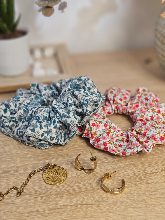 Chouchou fleuri bleu